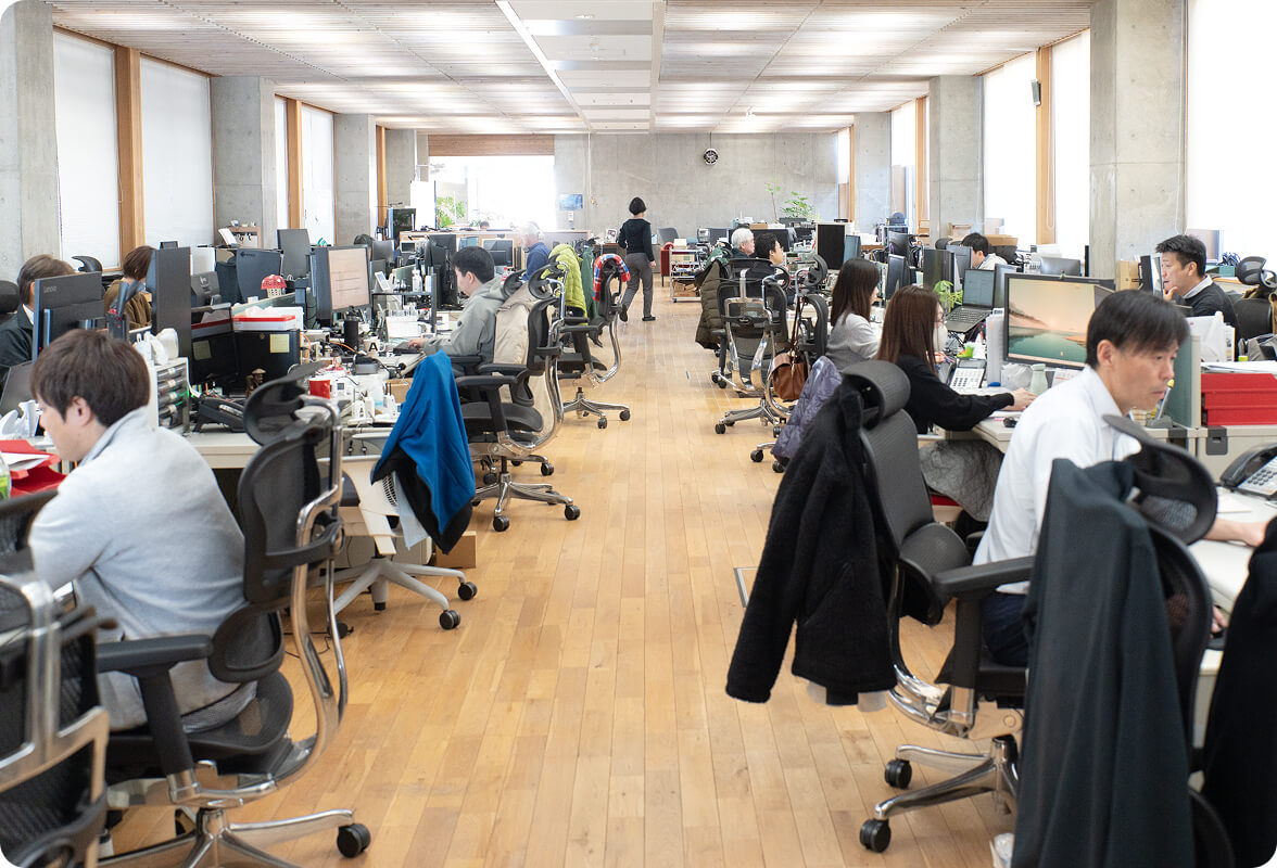 上下関係や部署間の敷居を感じさせない、フラットな雰囲気の中、それぞれの個性を活かした働き方を。